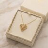 Amour Serisi‘nden bu 14 ayar kalp taşlı altın kolye, milgrain boncuklu altın daire çerçevenin tam merkezinde süzülen kalp kesimli zirkon taşıyla aşkı hem geometrik hem de duygusal bir formda yeniden yorumlar. Daire, sonsuzluğu ve korumayı; kalp ise sevgiyi simgeler — bu iki evrensel sembolün buluşması Amour Halo‘yu yalnızca bir takı değil, derin bir anlam taşıyan özel bir parçaya dönüştürür.