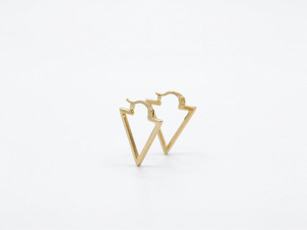 Bloc Serisi‘nden bu 14 ayar üçgen altın küpe, geometrinin en saf ve güçlü formunu takıya taşır. “Delta”, matematikte ve mimaride üçgeni simgeler; bu küpede de tam olarak o keskin, kararlı ve özgün duruş kendini gösterir. Taşsız sade yapısı, ince tel formun zarifliğini ön plana çıkararak altının parlaklığını tek başına konuşturur.