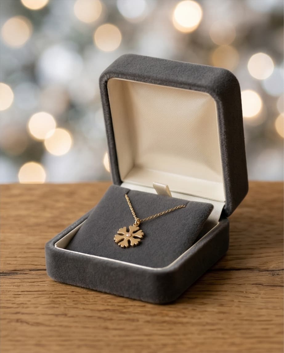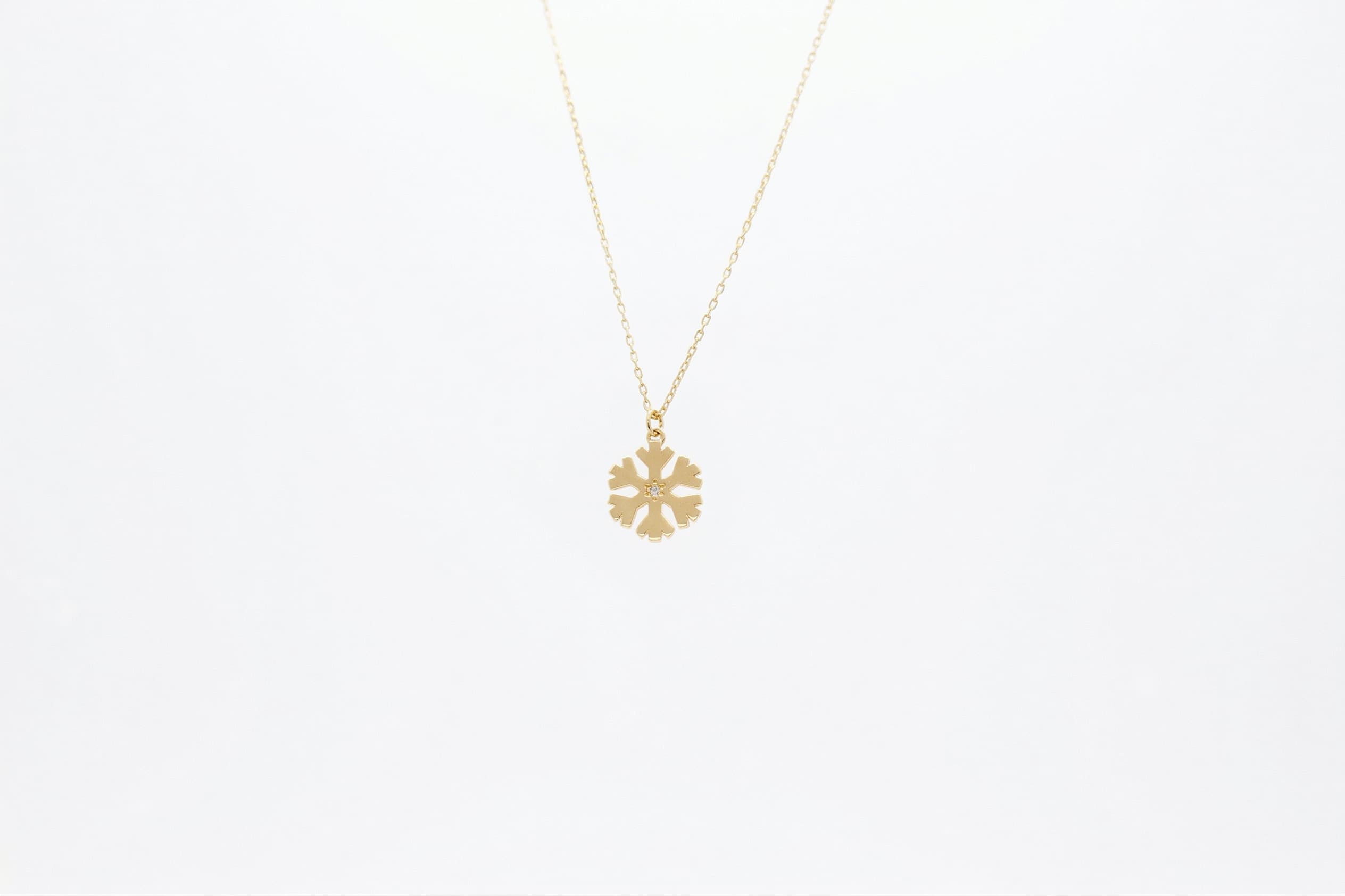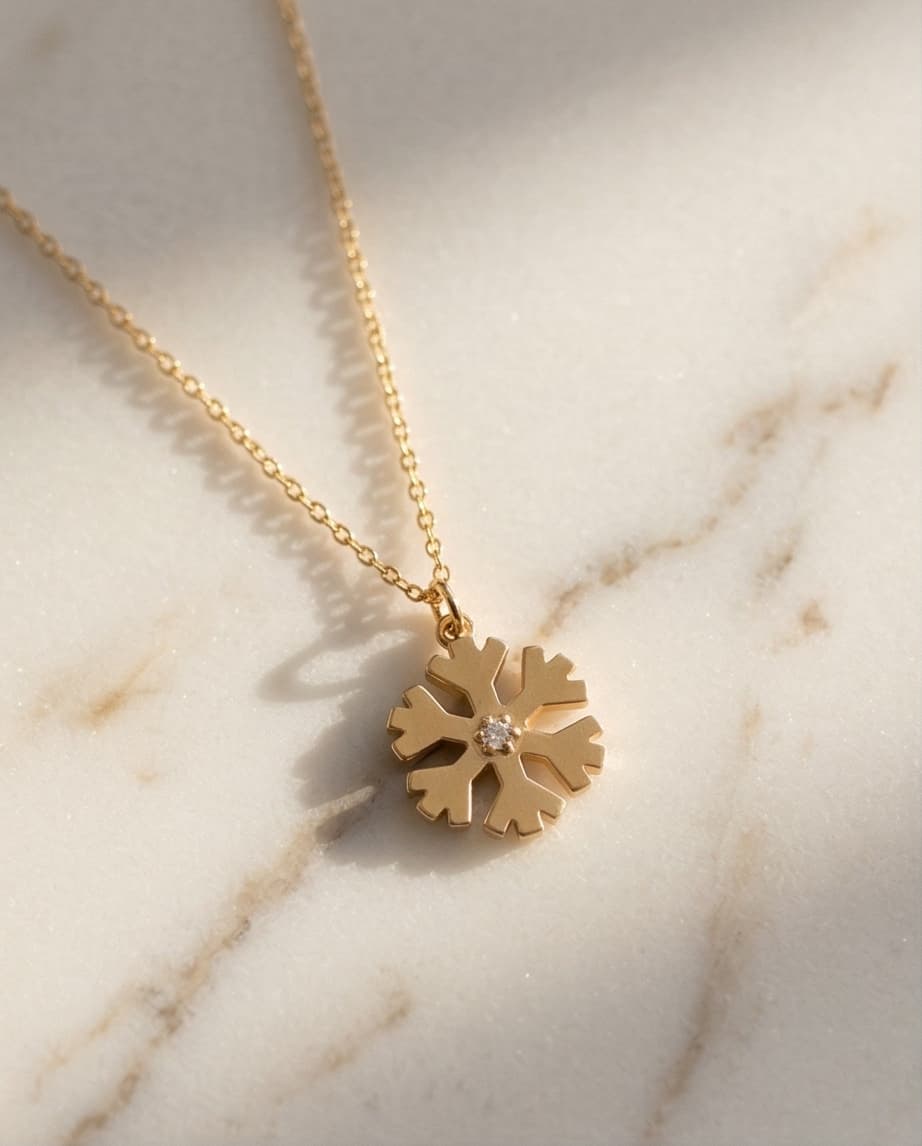 “Flocon”, Fransızcada kar tanesi anlamına gelir. Doğanın en küçük ama en mükemmel geometrik formlarından biri olan kar tanesi, simetrisinin kusursuzluğuyla hem bilimi hem de sanatı büyülemiştir. Celeste Flocon kar tanesi altın kolye, Celeste Serisi’nin gökyüzü temasında bu nadir ve eşsiz formu altının sıcaklığıyla buluşturur; soğukla sıcağın, geçiciyle kalıcının bu paradoksal birleşimi kolyeye derin bir anlam katar.