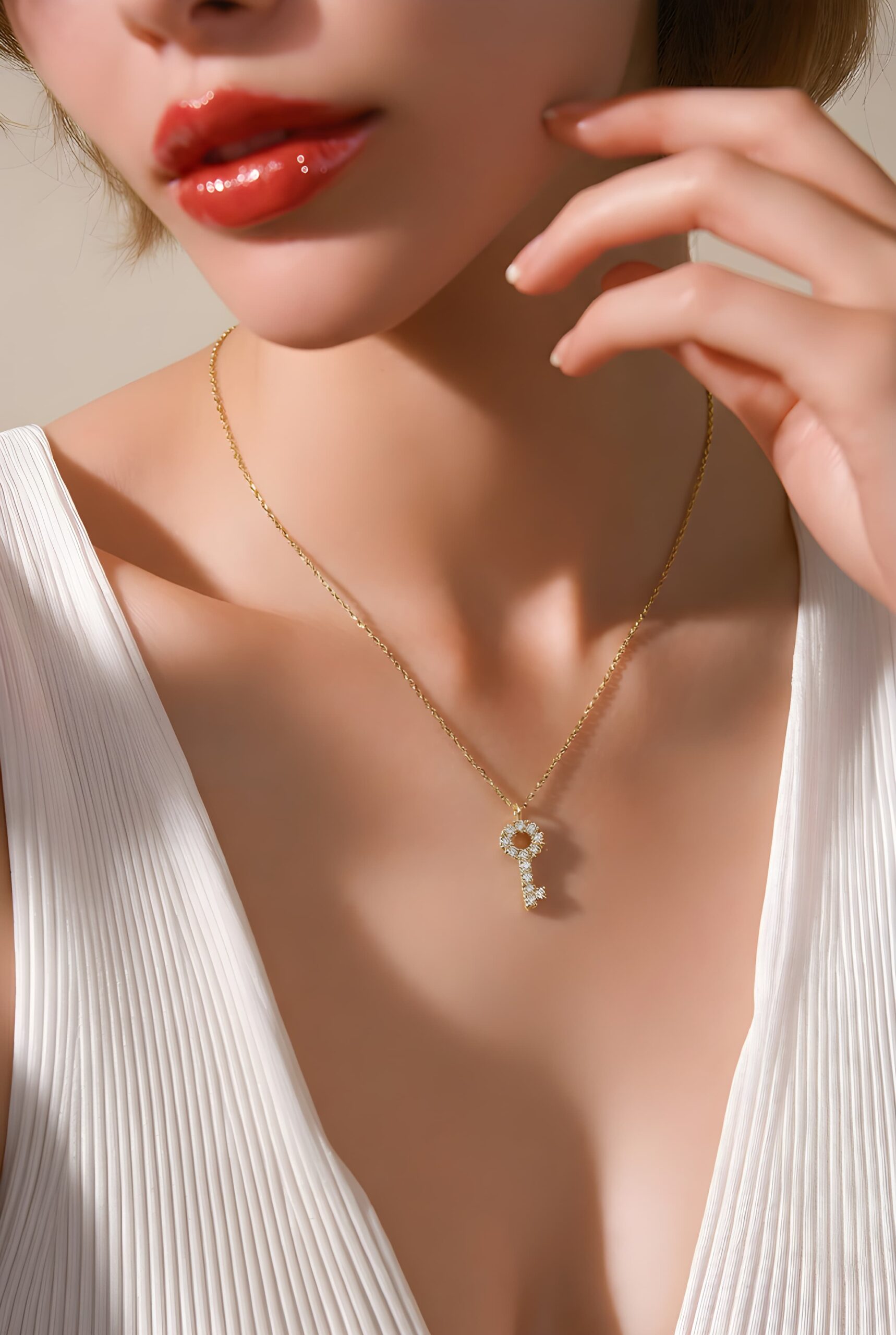 ✨ Clef de Luxe Işıltılı Kadın Altın Kolye Fransızca “Lüksün Anahtarı” anlamına gelen Clef de Luxe Işıltılı Kadın Altın Kolye, 14 ayar gerçek altının sıcaklığıyla usta işi taş detaylarını birleştiriyor. Yeni başlangıçları, umudu ve kişisel başarıları simgeleyen anahtar figürü, üzerindeki yüksek kaliteli taş işlemeleriyle göz alıcı bir parıltı sunar.