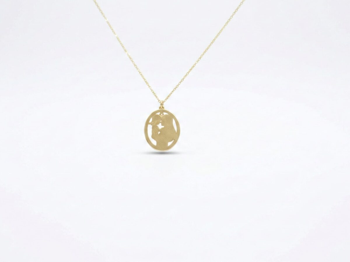 Bir annenin evladına duyduğu sonsuz sevgiyi ve o ilk kucaklaşmanın sıcaklığını temsil eden Eternal Bond Anne Çocuk Altın Kolye, 14 ayar gerçek altından büyük bir hassasiyetle işlenmiştir. Birbirine sarılan iki silüetin yer aldığı oval plaka tasarımı, “anne ve çocuk” arasındaki o kopmaz ve kutsal bağı en sanatsal haliyle boynunuza taşıyor.