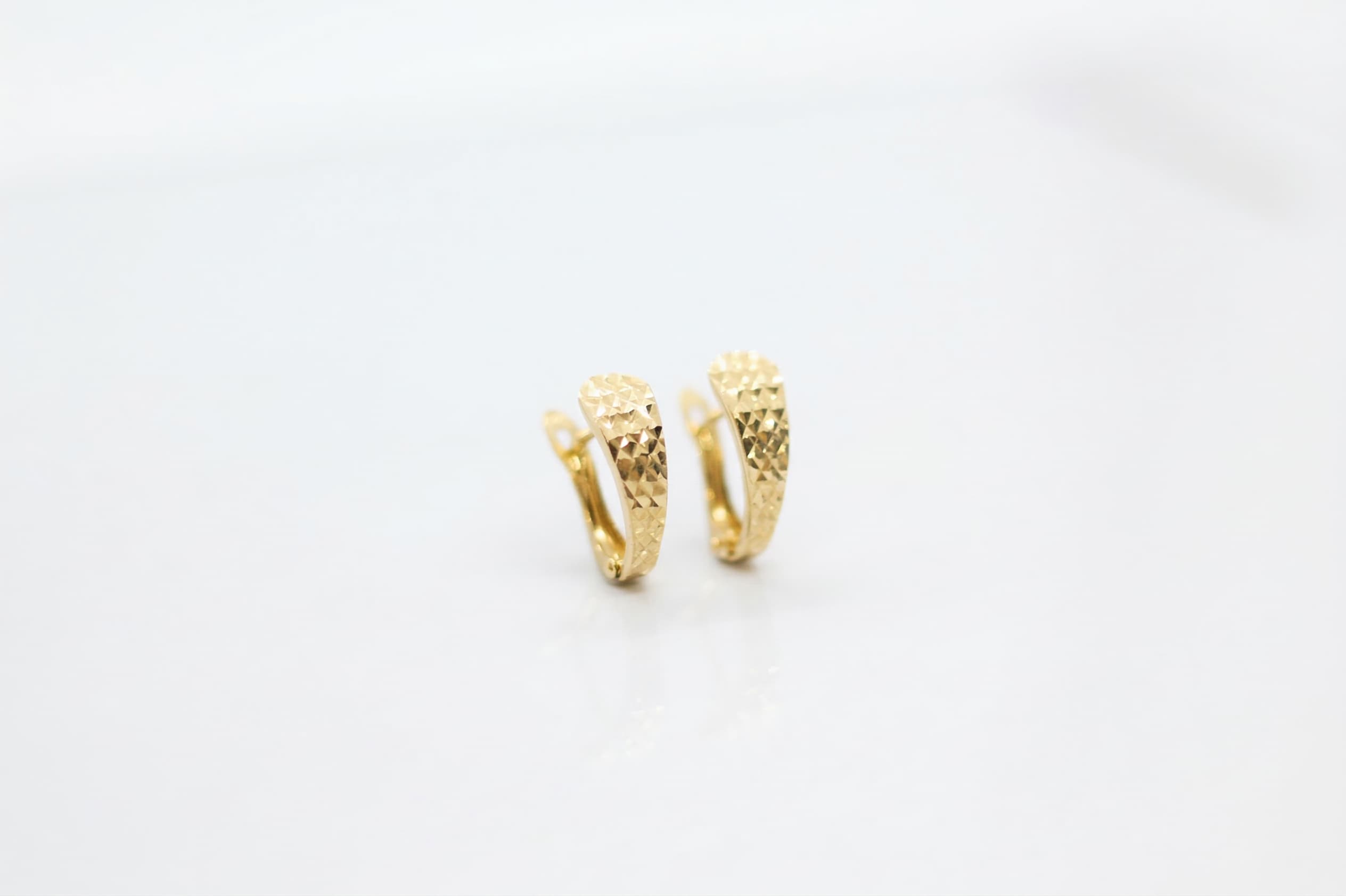 Facette Serisi‘nden bu 14 ayar elmas kesim altın küpe, yüzeyini kaplayan geometrik tırtıklı doku sayesinde ışığı her açıdan farklı biçimlerde kırar ve yansıtır. “Facette”, mücevher dilinde taşın kesim yüzeylerini ifade eder; bu küpede de tam olarak o elmas kesim dokusu, altını adeta taş gibi parlatır.
