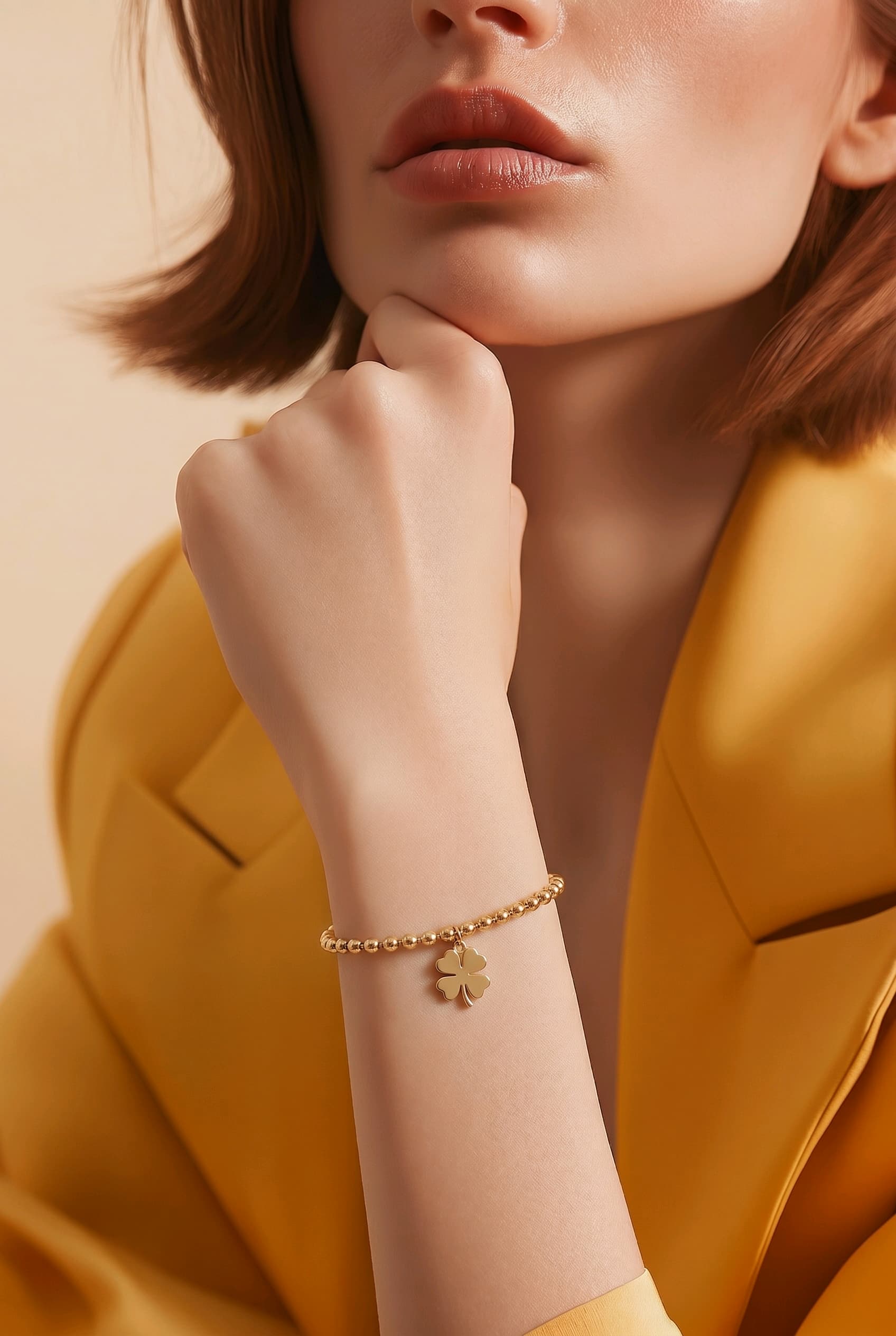 Dört yapraklı yonca altın charm bileklik, kültürler arası en evrensel şans sembollerinden biridir. Fortuna Clover bu anlamı moda bir aksesuara dönüştürür: top zincirin modern ağırlığı ile yoncanın nostaljik çağrışımı arasında şıklık ve his iç içe geçer. Hediye olarak verildiğinde “sana iyi şanslar diliyorum” mesajını taşıyan, alan kişiyi özel hissettiren bir parçadır.