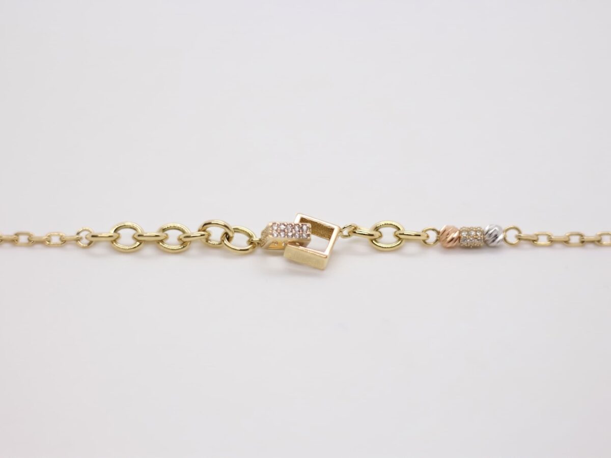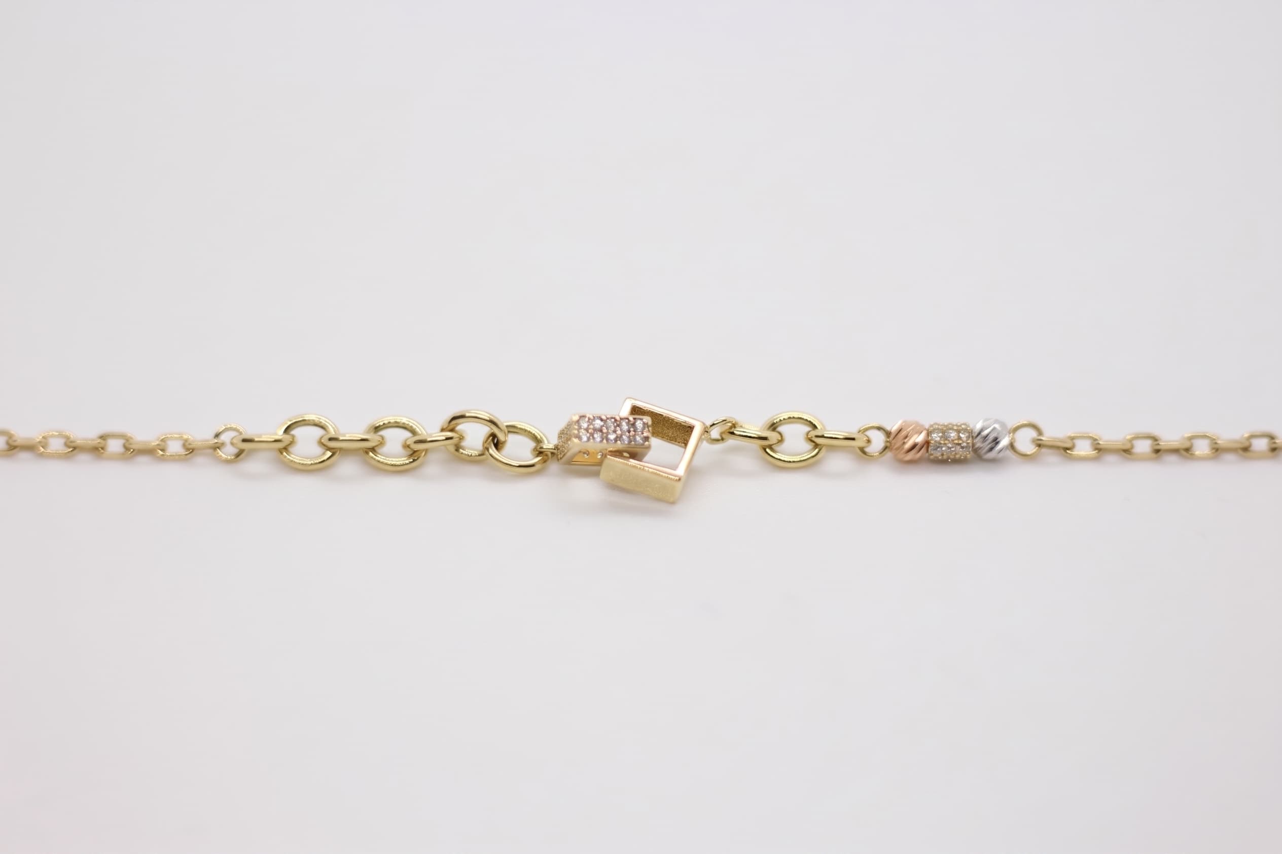Muse Serisi’nin hikaye anlatan parçası olan Muse Lock, sarı altın zincir üzerinde zirkon taşlı asma kilit motifi ve üç renkli dorica toplarla dorica altın bileklik formuna hem anlam hem zenginlik katan özgün bir tasarımdır. Kilit, toplar ve zincir; üç farklı doku tek bir bileklikte buluşur.