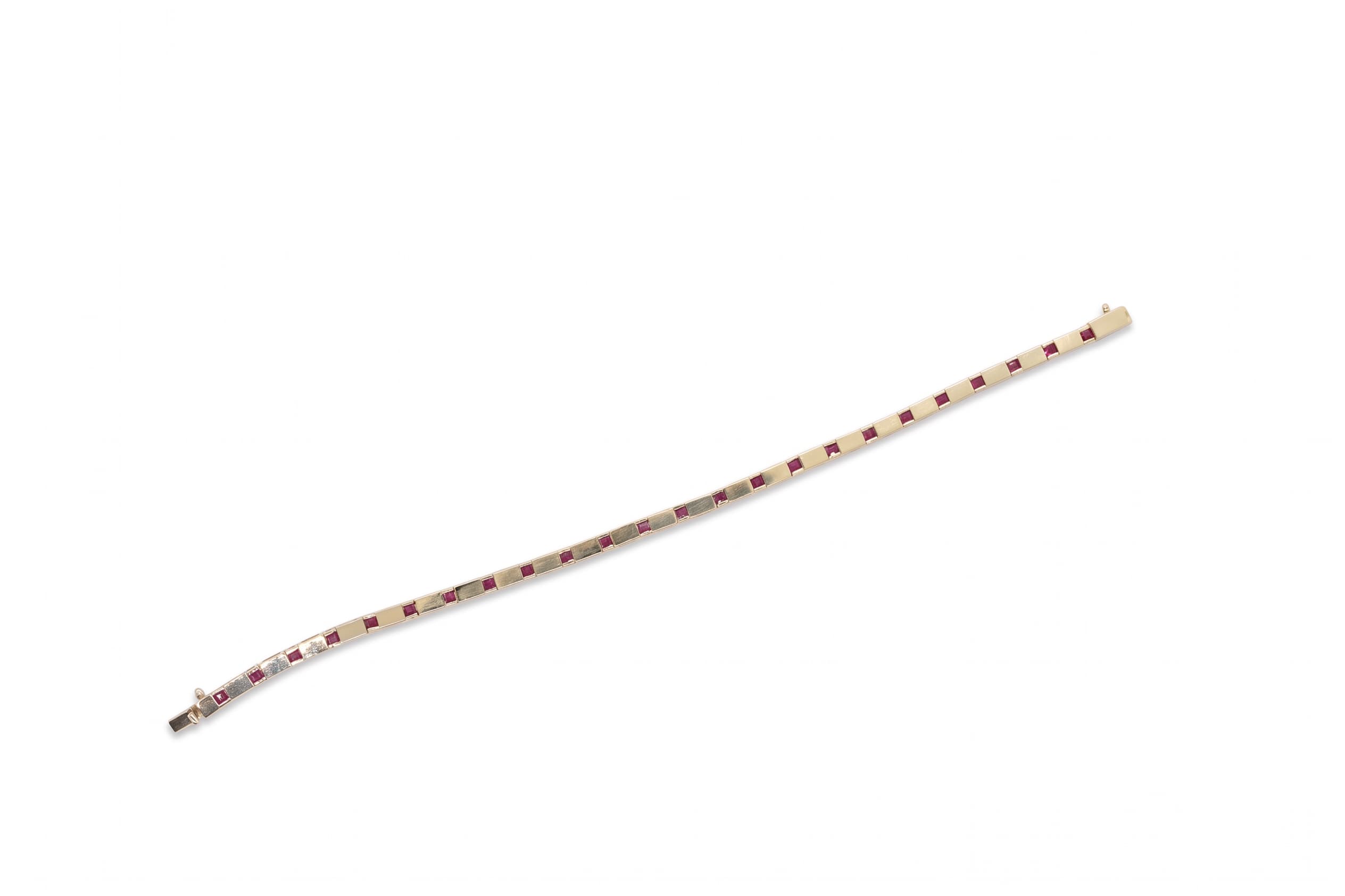 Scarlet Serisi’nin tanımlayıcı parçası olan Scarlet Line, kare kesim kırmızı taşların sarı altın halkalar arasına eşit aralıklarla dizilmesiyle oluşan o kusursuz ritmi bileğinize taşır. Her taş, bir sonrakini çağırır; zincir boyunca kesintisiz akan bu renk tekrarı tenis bilekliğin neden hiç modası geçmeyen bir form olduğunu bir kez daha kanıtlar.