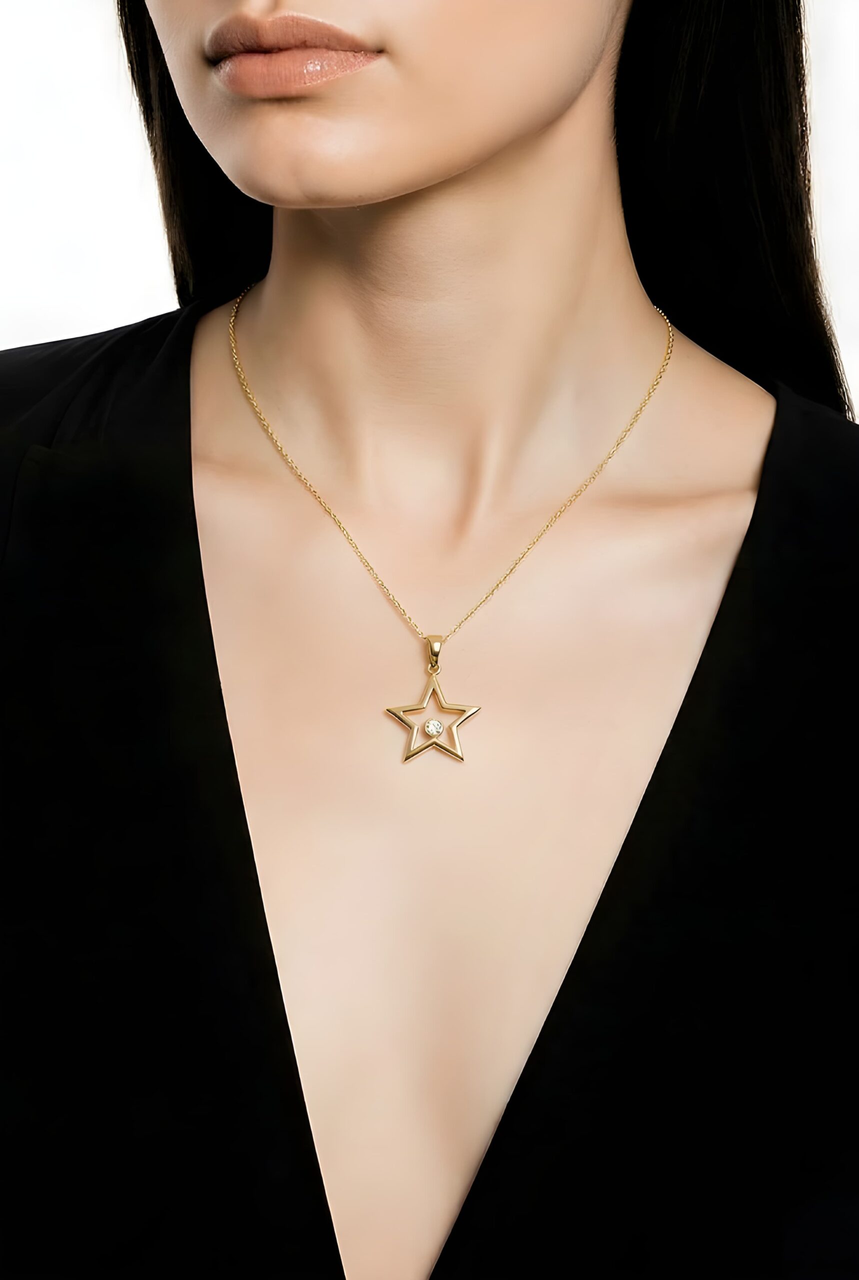 Kaliteli işçilikle üretilen bu yıldız formlu tek taşlı altın yıldız kolye, özel günlerde sevdiklerinize hediye edebileceğiniz zarif ve değerli bir takı seçeneğidir. Günlük kullanımda şıklığınızı tamamlayan bu model, takı koleksiyonunuzda zamansız bir parça olacaktır.