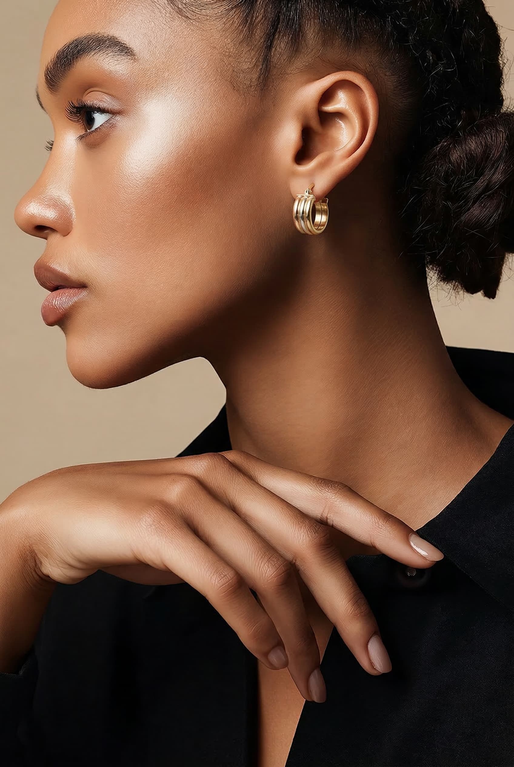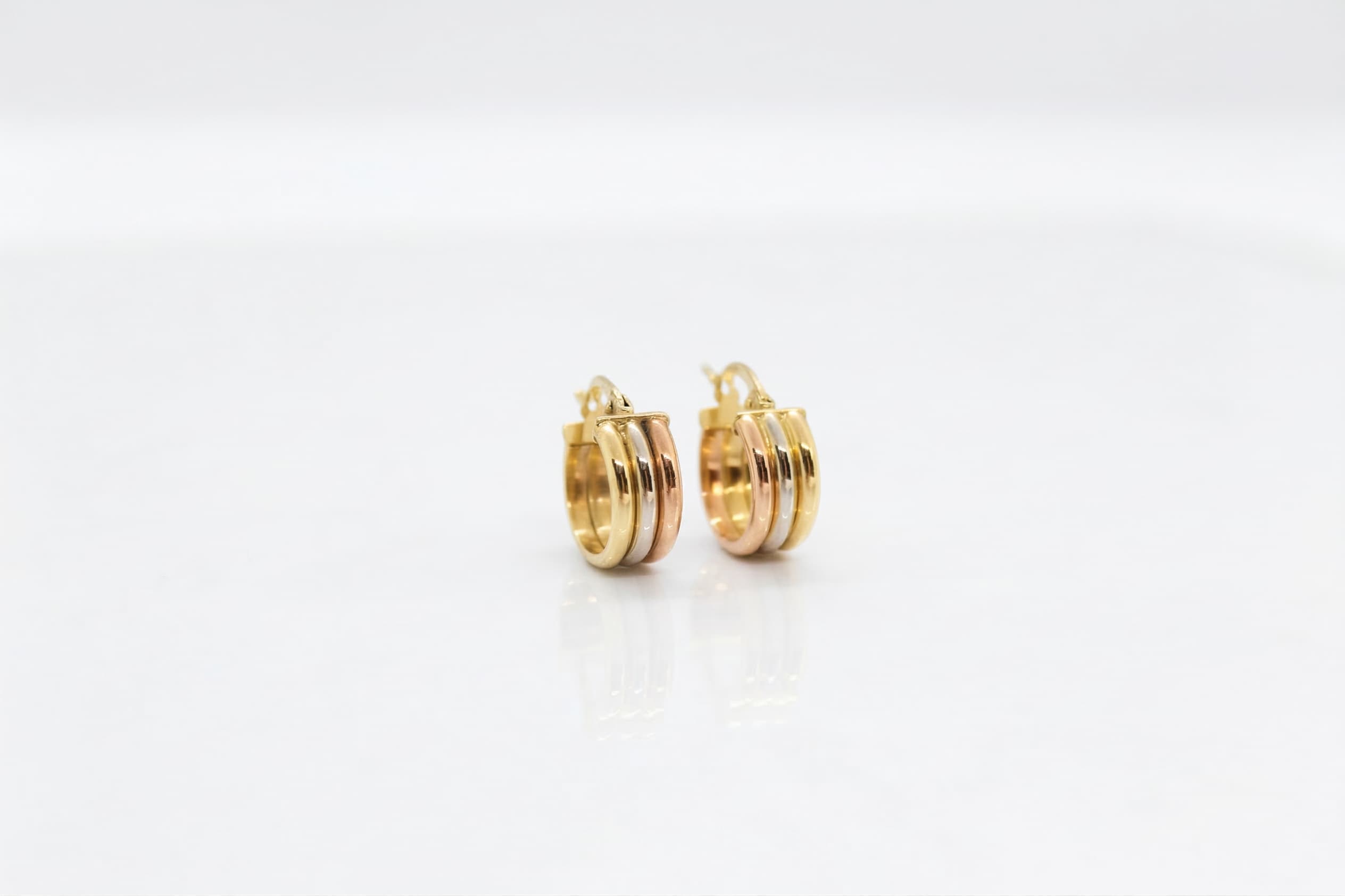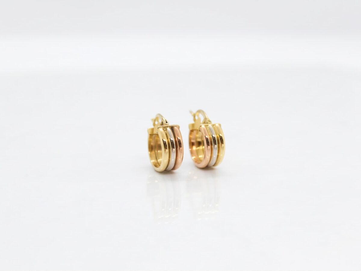 Twist Serisi‘nden bu 14 ayar üç renkli altın halka küpe, sarı altın, beyaz altın ve rose altının yan yana gelişiyle eşsiz bir renk uyumu ortaya koyar. “Trio” adı, bu üç tonun kusursuz birlikteliğinden ilham alır; her renk diğerini tamamlayarak küpeye hem sıcak hem de sofistike bir karakter kazandırır.
