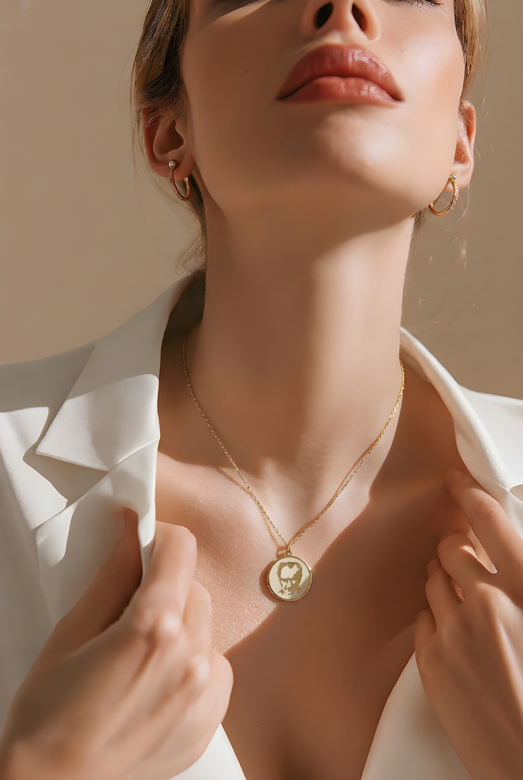“Sessiz lüks” anlayışını tarihsel bir derinlikle buluşturan bu kolye, minimalist dairesel formuyla modern kadının stiline güçlü bir karakter katar. Her iki yüzüyle de ayrı bir hikaye anlatan bu tasarım, nesilden nesile aktarılacak bir “Cumhuriyet Mirası” niteliğindedir. Kendi stilinize veya günün anlamına göre ister silüetini ister imzasını sergileyerek bu kutsal emaneti gururla kalbinizin üzerinde taşıyabilirsiniz.